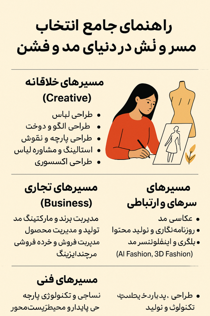 دنیای فشن فقط «طراحی لباس» نیست. مثل یک صنعت بزرگ است با مسیرهای متنوع: