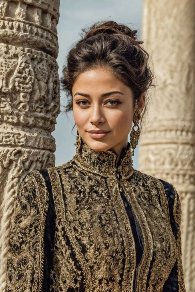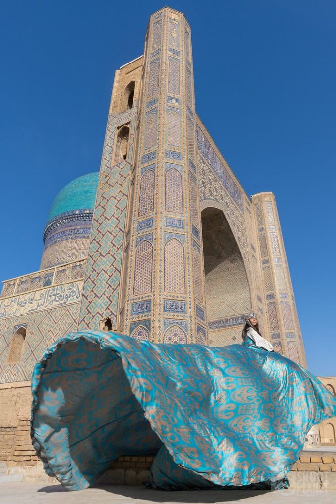 رنگهای فیروزهای، لاجوردی، طلایی و خاکی که در بناهای تاریخی به کار رفته اند، در طراحی لباسها حس اصالت و زیبایی را به تصویر بکشند.