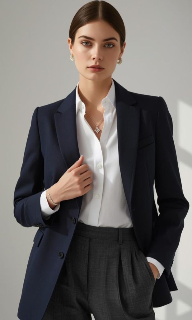 استفاده از یک پیراهن سفید یا بلوز یقهدار زیر کت، انتخابی کلاسیک برای این استایل است. بلوزهای یقهاسکی یا پیراهنهای بدون یقه نیز برای استایلهای مدرنتر گزینه مناسبی هستند.