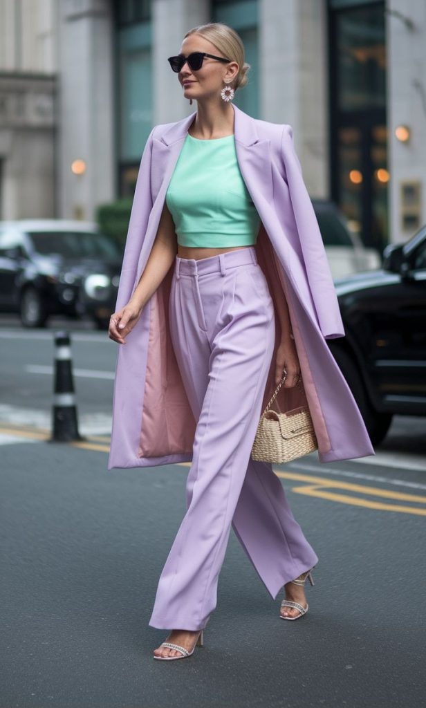 در فصول گرم سال، کت و شلوار زنانه میتواند با استفاده از پارچههای سبک و رنگهای روشن به شکلی مدرن و تابستانی استایل شود ؛ در این استایل مواردی را باید لحاظ کنید: