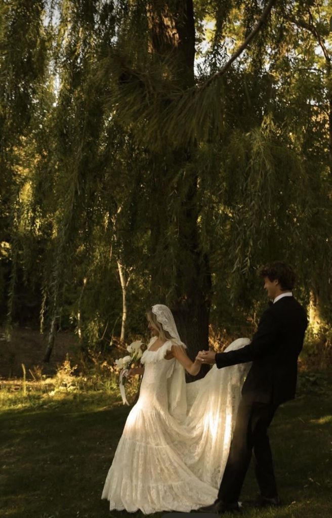 اگر قصد داری در فضای باز یا باغ عکس بگیری، پارچههای براق یا دانتل نقشدار در نور طبیعی فوقالعاده میشوند