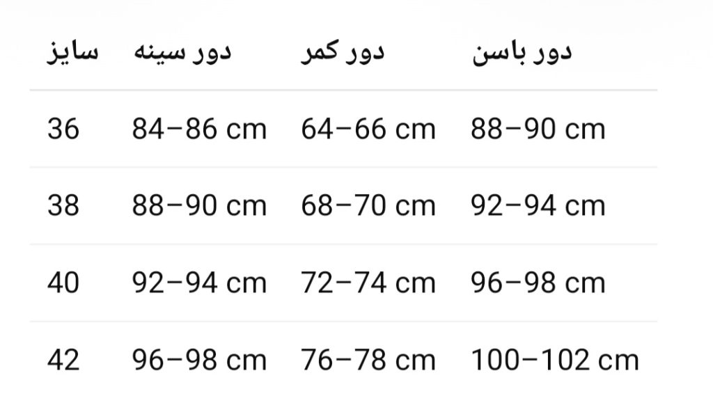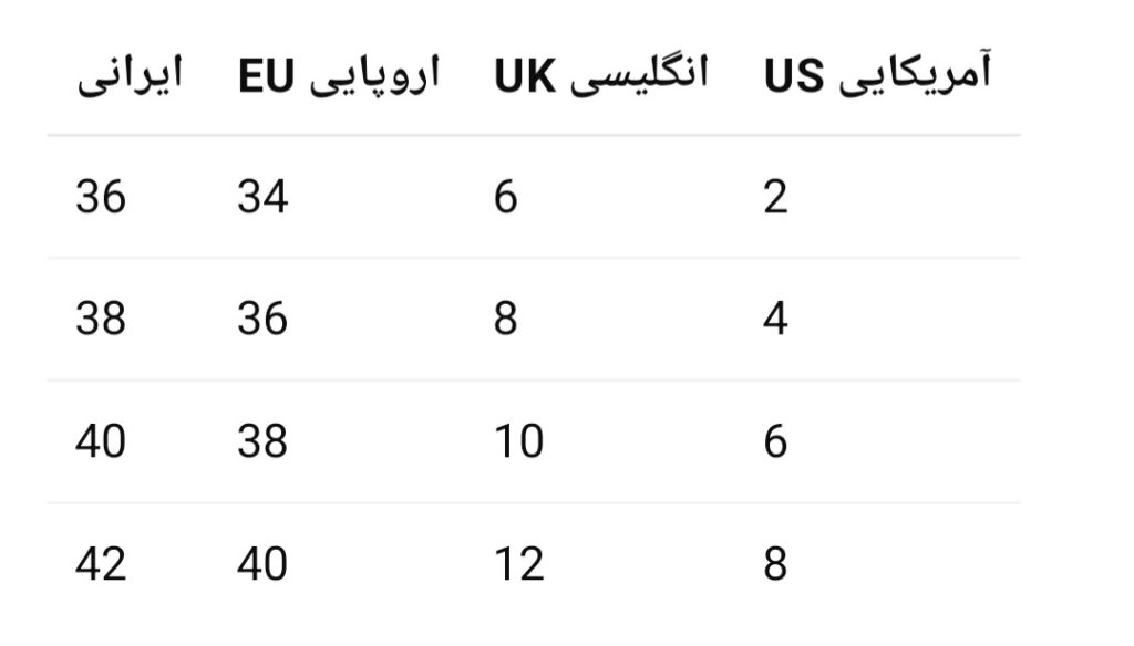 🔹️تبدیل سایز زنانه به شرح جدول زیر است :